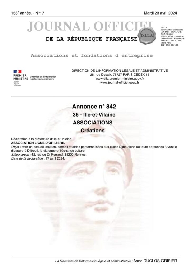 Cette reconnaissance légale renforce notre engagement à offrir un accueil, un soutien, des conseils, ainsi que des aides personnalisées aux exilés Djiboutiens et à toute personne fuyant la dictature à Djibouti. Nous sommes également dévoués à promouvoir le dialogue et l’échange culturel au sein de notre communauté.